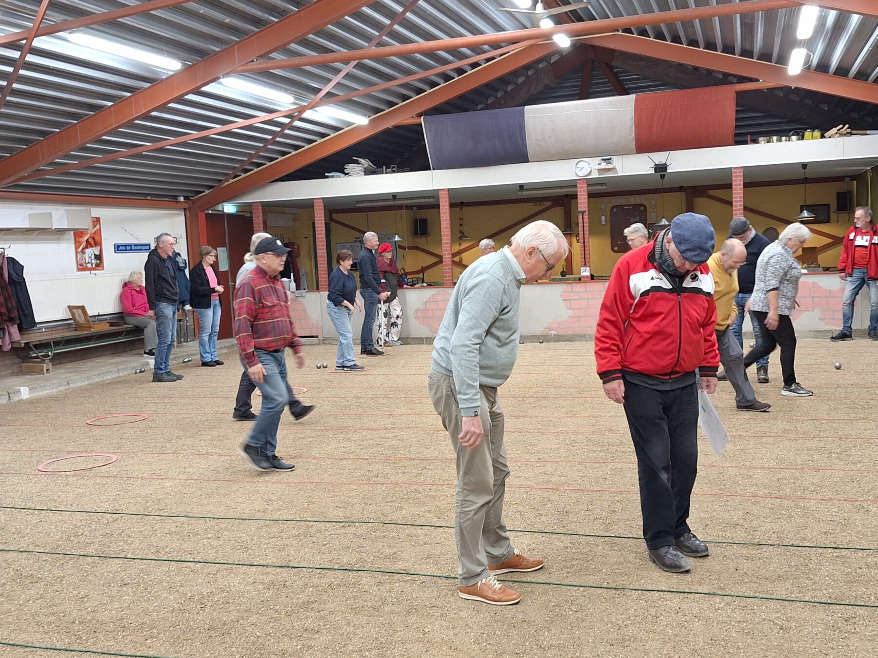 Na zes avonden intensief trainen en oefenen is de eerste cyclus afgesloten met een avond “apenkooien”. Op deze laatste avond werden een aantal oefeningen gedaan waarbij de aangeleerde technieken belangrijk waren. Groepen van twee of drie moesten zoveel mogelijk punten behalen met het het werpen van boules op een wip (donnée!) waar bij een goede worp dobbelstenen wegsprongen en het aantal ogen de behaalde punten aangaven. Bij een volgend spel moest door een kleine opening geplaatst worden. Bij een ander spel werd met vierkante “boules” geworpen. Bij het vierde spel moest op verschillende données geworpen worden waarbij een verschillend aantal punten behaald kon worden, hoe verder hoe hoger het aantal punten. Er was ook een “caviaspel”. Hierbij moesten de boules door verschillende openingen gespeeld worden. Bij het laatste spel was het de bedoeling om zoveel mogelijk blikken om te gooien. Dit alles met boules! Met gevolg dat de begeleider bij dit spel even niets meer hoort.